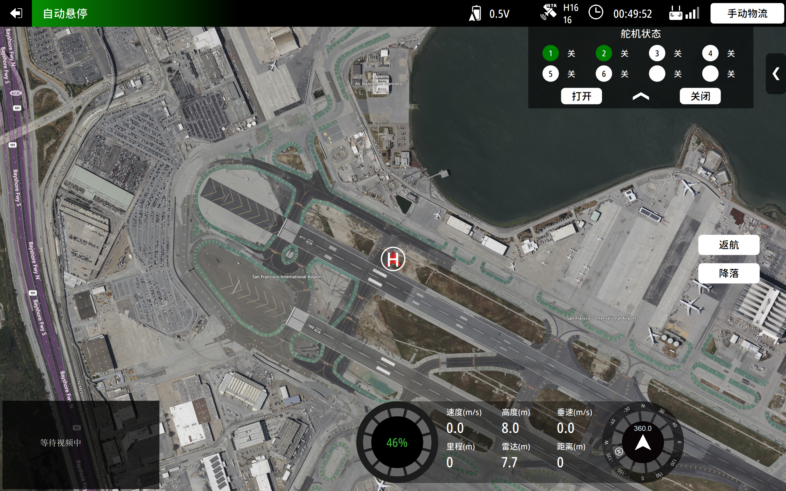 -f)	点击“返航”,飞机将返回起飞点;<br>