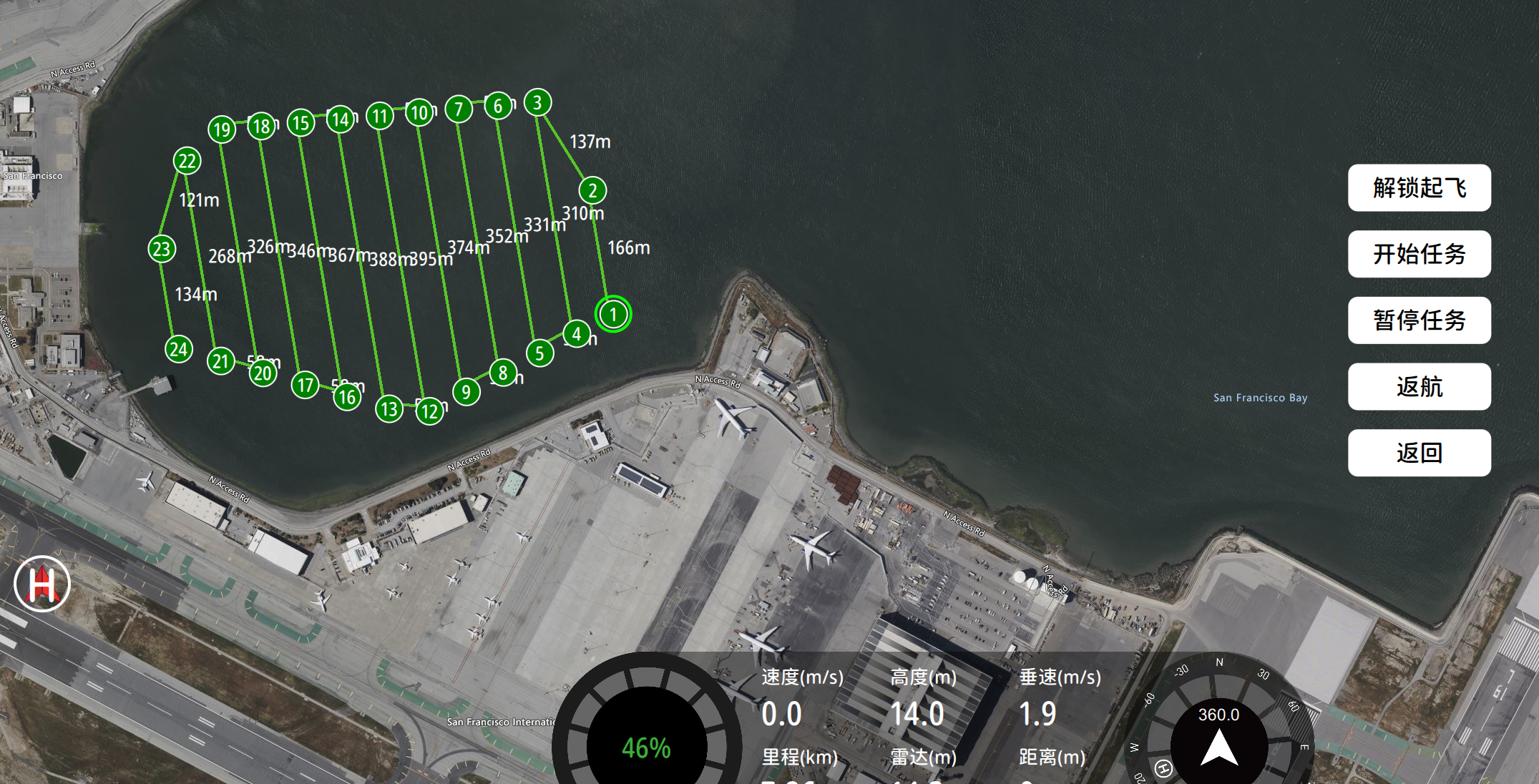 -c)	点击“开始任务”,飞机按规划的航线执行任务;<br>