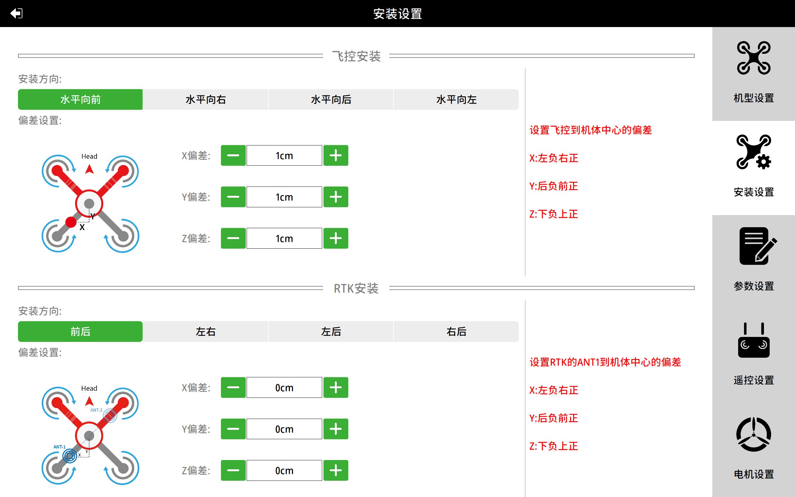 请务必设置正确的飞控安装方向,否则将导致炸机事故。